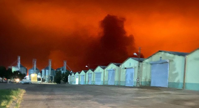Ceylanpınar TİGEM arazisinde iddiaya göre yıldırım düşmesi sonucu yangın çıktı. Rüzgarın da etkisiyle hızla büyüyen yangın ekinlere büyük zarar verirken yangın kontrol altına alınmaya çalışılıyor. Yangın nedeniyle gökyüzündeki kızıllık kilometrelerce uzaktan görülebiliyor. CEYLANPINAR- Yangın bu akşam Ceylanpınar Tarım İşletmesi Müdürlüğü’ne(TİGEM) bağlı bir işletmede çıktı.İddiaya göre buğday ekili tarlaya yıldırım düştü. Şiddetlirüzgarın da etkisiyle yangın hızla yayılırken bölgeye çok sayıda itfaiye ekibisevk edildi. Yangının büyük bir alana yayıldığı belirtildi. Şimdiden tonlarcaekin ve canlılar zarar görürken yangın nedeniyle gökyüzü de kızıla boyandı.Yangın kilometrelerce uzaklıktan dahi görülebiliyor.